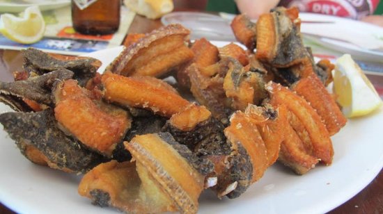 Fish, fried moray, octopus with garlic, fried cheese, limpets, garlic prawns, all of this served with a nice bread and the world-famous mojo sauce, which can be green or red, picón or not.