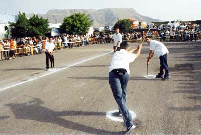 Bola canaria: This is one of the oldest games that we have recorded documents of, since it was already known in Ancient Egypt. It belongs to the bocce family and it is thought to have arrived to the Canary Islands from the Iberian Peninsula, but it is unknown when or who brought it. Lanzarote is one of the places with the biggest bola canaria tradition, and the players from this island were considered the best and most respected of all the islands. Many claim the game was born in Lanzarote, and the island contributes the most in its development and circulation to other islands. The best balls are made of palo blanco (Picconia excelsa), which is also used for the wheels in windmills and was brought from the isle of La Palma.
