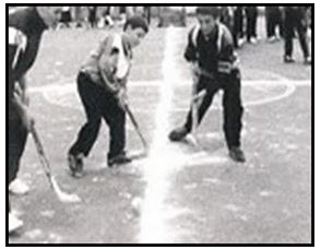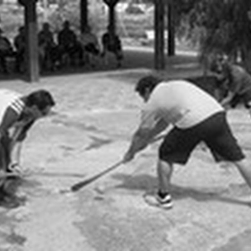 Pina: This is yet another game played with sticks or canes. It is believed it was developed from Lacrosse, of which there are records from French miniatures from the 14th century and even from ancient Greece. The first known records of pina are from the 19th century, from an 1884 festival: “Holidays, wrestling, and games of juego de pelota and pina are celebrated in the town square” (Fernández Castañeyra). As far as we know, it was a farmers’ game in which one had to take a wooden ball called pina to a goal at the end of the opponent’s field by hitting it with a stick; meanwhile, the other team had to stop them and vice versa. This game was for men only, as tackling other players was common. The game started from the centre of the field, both at the very beginning of it and after every goal, and the playing field was marked with lines on the ground. The game’s end depended on the time of day (i.e.: when the sun went down or depending on the amount of natural light) rather than the accumulated points. The ball was usually made of pine or heather wood and the sticks were light and rather short (around fifty centimetres long) with a curved end to hit the ball better.
