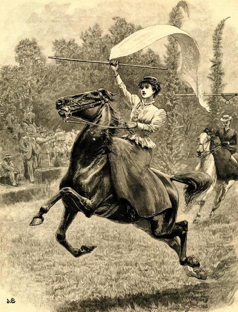 Ring racing, also known as ribbon racing, are horse races that evolved from medieval tournaments and floral games, so they have always met with a large participation. In these races, the riders, following a turn determined beforehand by the judges, must gallop or canter under a structure composed of two vertical posts on which rests another, horizontal post, and they have to put a pointy stick of about twenty centimetres through a ring or ribbon that hangs from a coloured sash tied to the horizontal post. The sash is tied with a reel, so there are no risks of it getting caught on anything. Points are awarded to the riders for every stick that successfully goes through the ring, and, in the case of a tie, the involved riders must ride again. The stick must go through the ring cleanly, and it is not allowed to skewer the sash. Every few races, the reels are replaced if it is needed. The horizontal post is placed around two and a half to three metres high, although it mostly depends on the height of the horses.